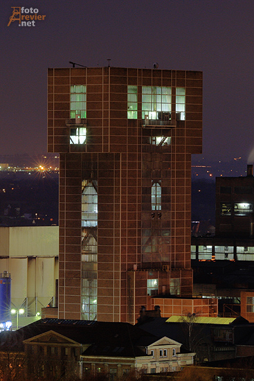 Gerüst stand ursprünglich auf Zeche Wilhelmine Victoria, Schacht 1 in Gelsenkirchen, heute Denkmal, beherbergt das LWL-Museum Zeche Zollern
